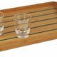 Serveringsbricka i laminerad bambu. Bambu är rötsäker och tålig mot variationer i luftfuktighet, vilket gör den till ett utmärkt materialval för den marina miljön. Den ljusa honungsfärgen bidrar till en varm atmosfär ombord.